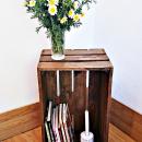 Caja de frutas de madera reciclada de estilo rústico hecha de forma artesanal. Una pieza decorativa que tiene múltiples uso.Como almacenaje por ejemplo de juguetes para tus peques como revistero o mesita auxiliar o de centro.También puedes hacer composiciones para utilizarlas a modo de estantería en cualquier lugar de la casa.
