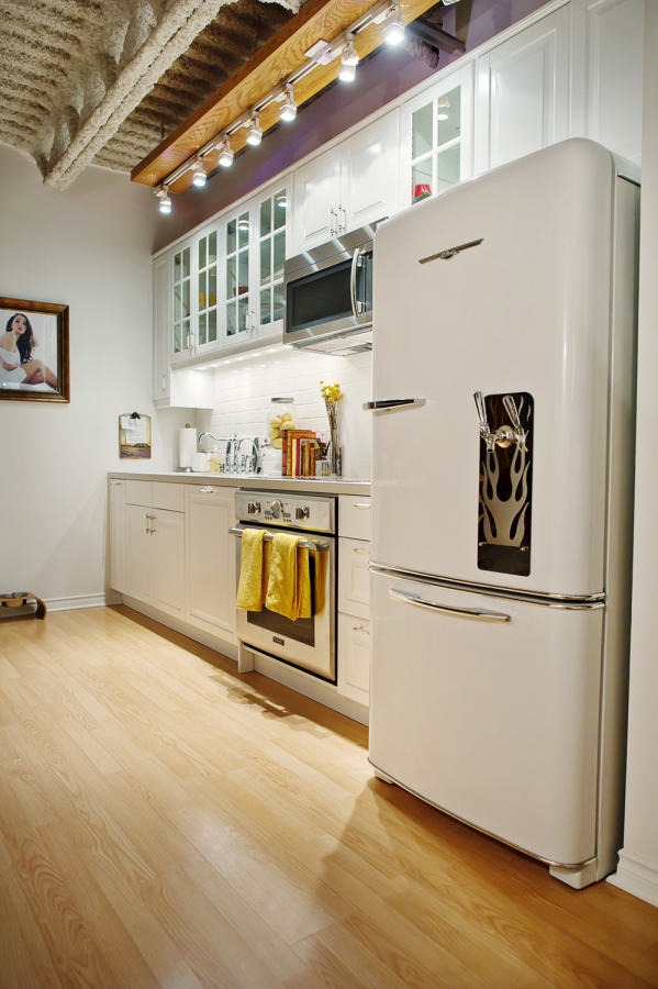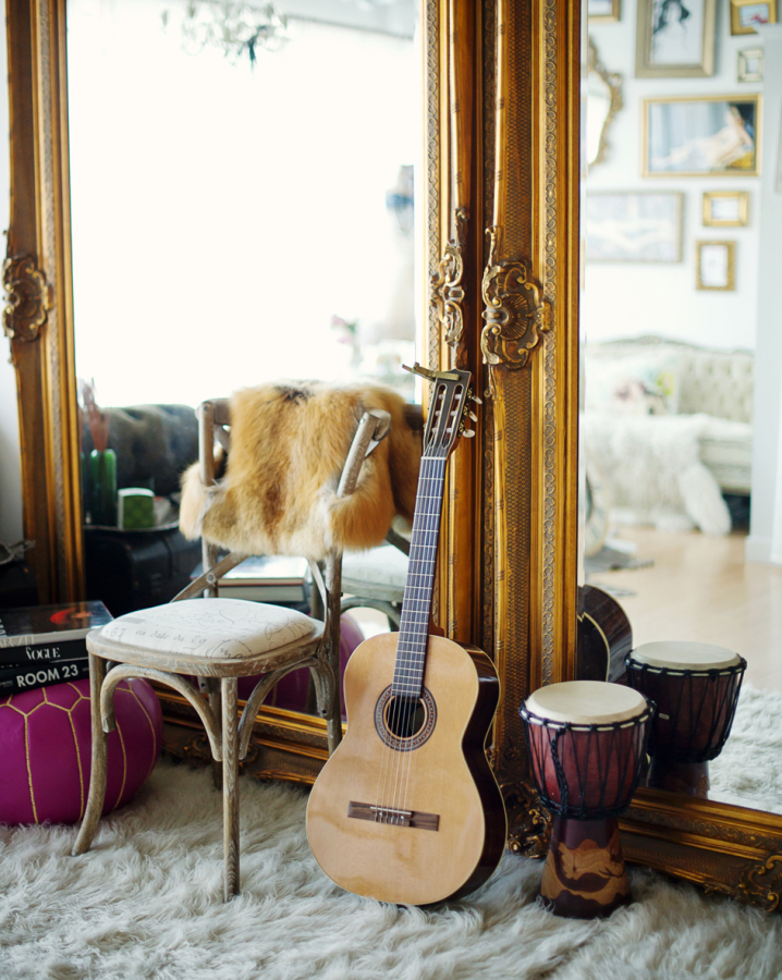 No....este loft no se encuentra en el país vecino sino en Vancouver ( EEUU) y cumple las funciones de vivienda y de estudio fotógrafico. Un universo creado por su dueña que hará las delicias de los amantes del mobiliario clásico francés,de las arañas de cristal,los espejos dorados XXL ,los sillones de líneas sinuosas y los objetos con historia como libros, exquisita porcelana o cámaras fotógraficas,maletas, baúles viejunps y todo ello mezclado con piezas actuales como los puff de estilo étnico o las cabezas de ciervo de cerámica que cuelgan de las paredes.