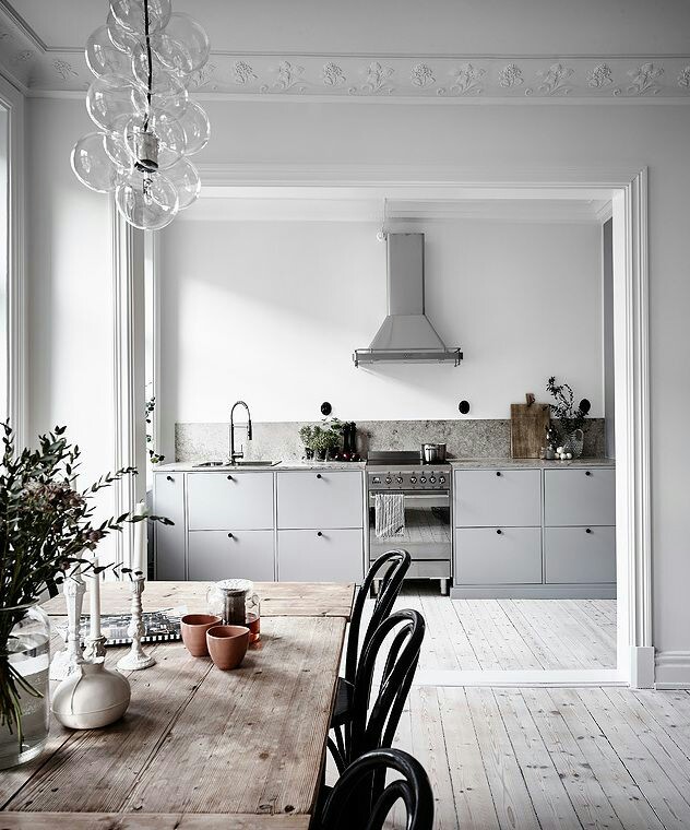 Poniendo una pieza principal como es una gran mesa de comedor de madera y forja que recuerda a este estilo con ambientes de estilo nórdico de plena actualidad. Moderno y un tanto minimalista.