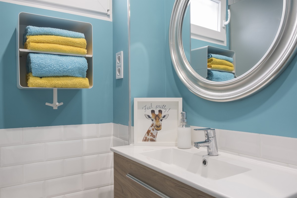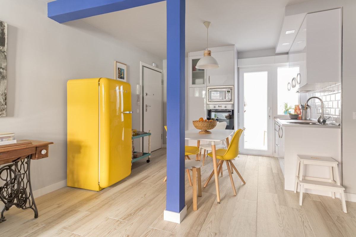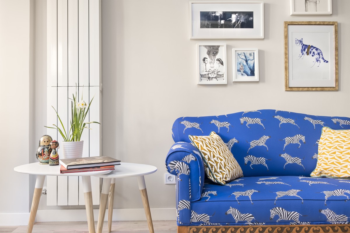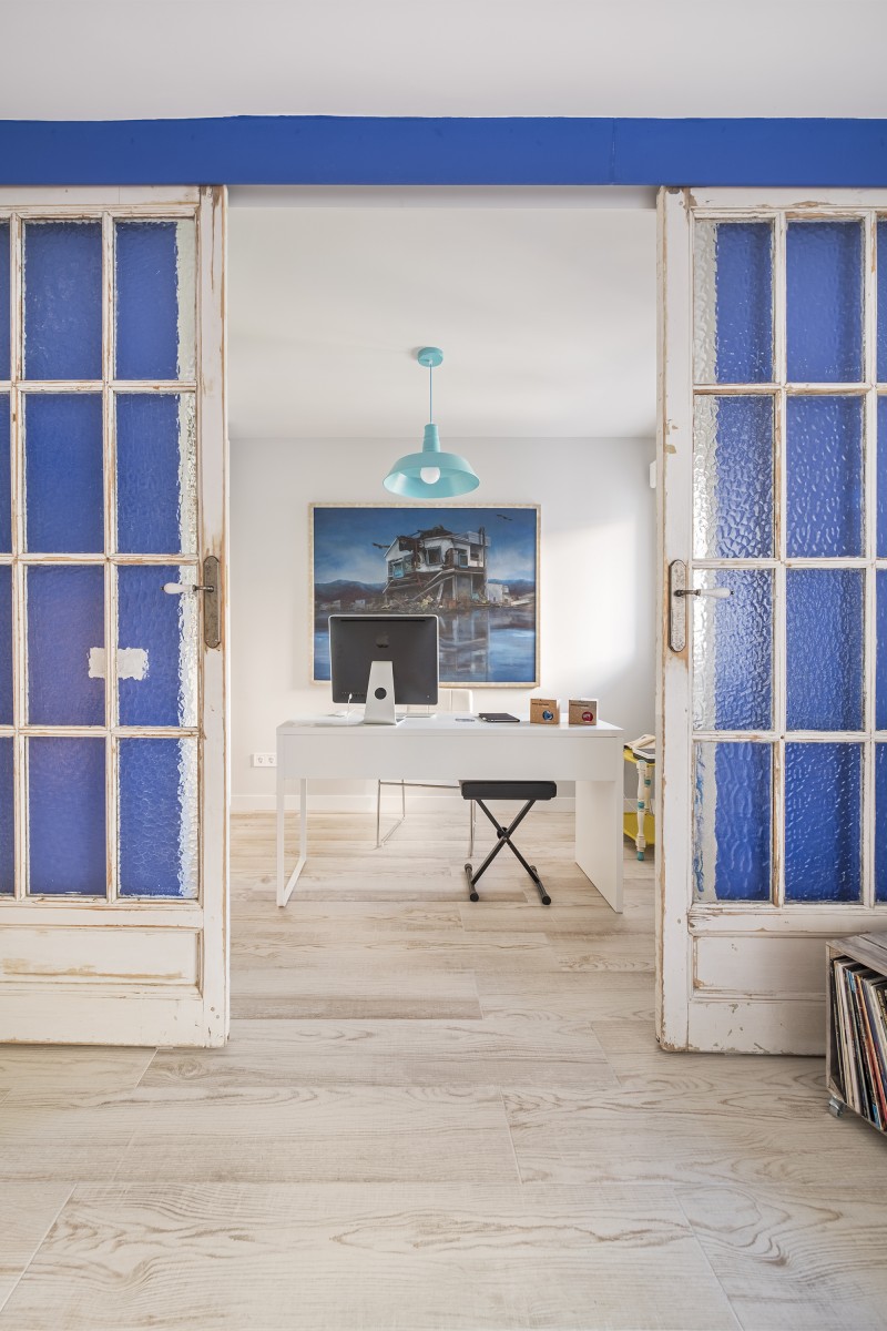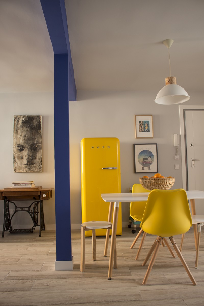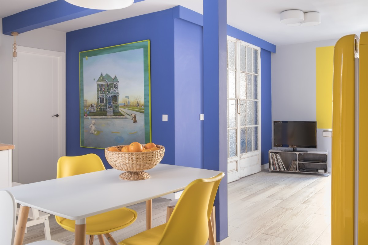 Su piso estudio rezuma vitalidad transmitida con esa paleta de colores tan intensa que ha jugado blanco combinado con azules y toques amarillos.Una mezcla atrevida pero que le ha quedado genial.