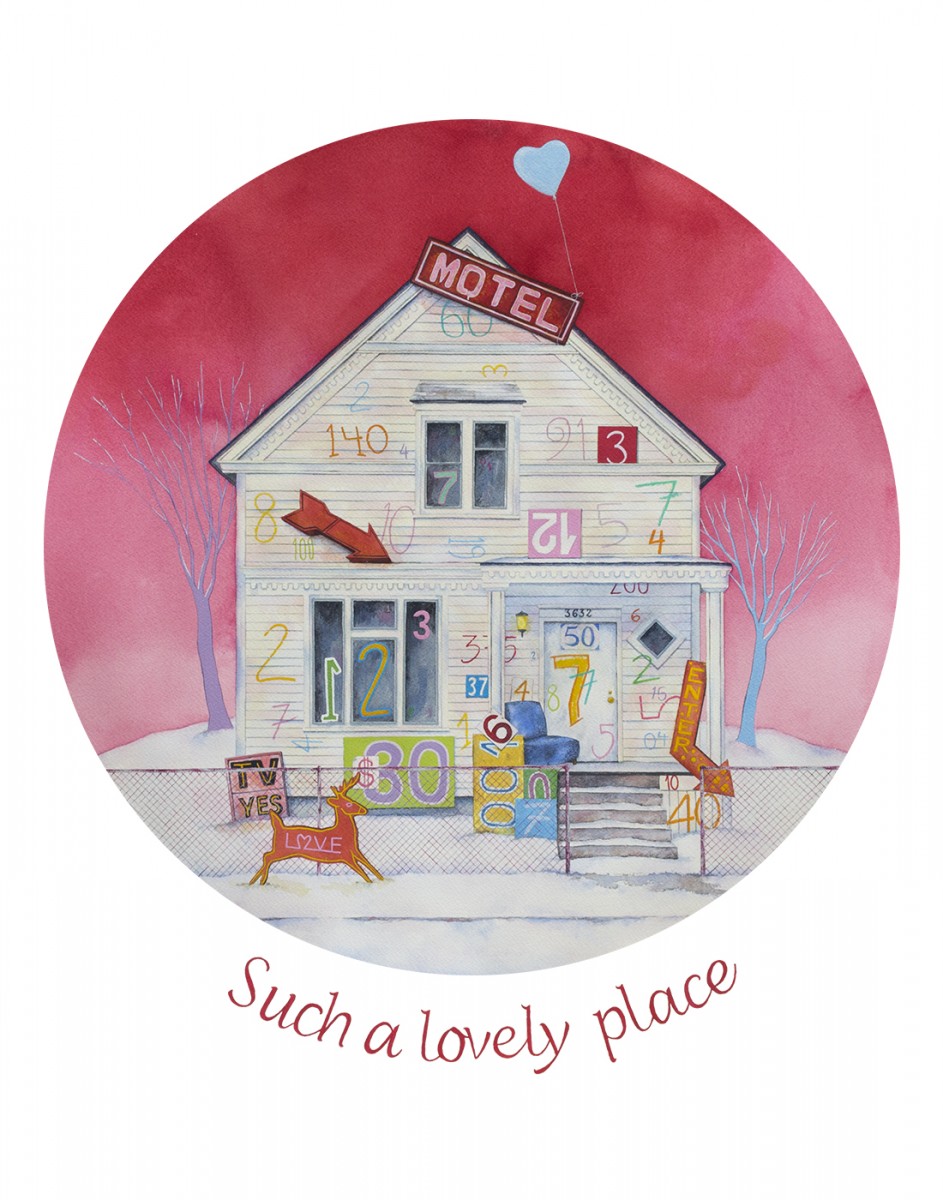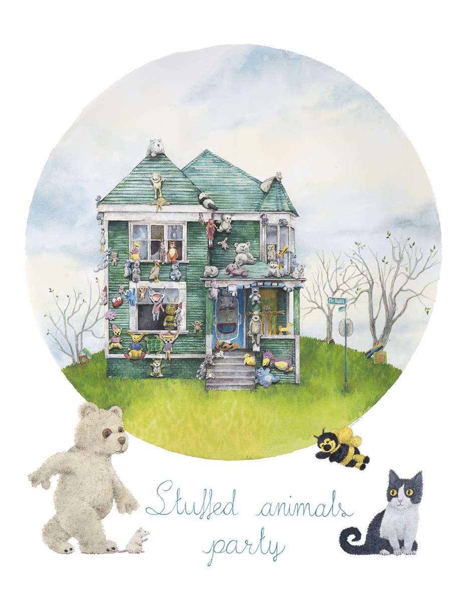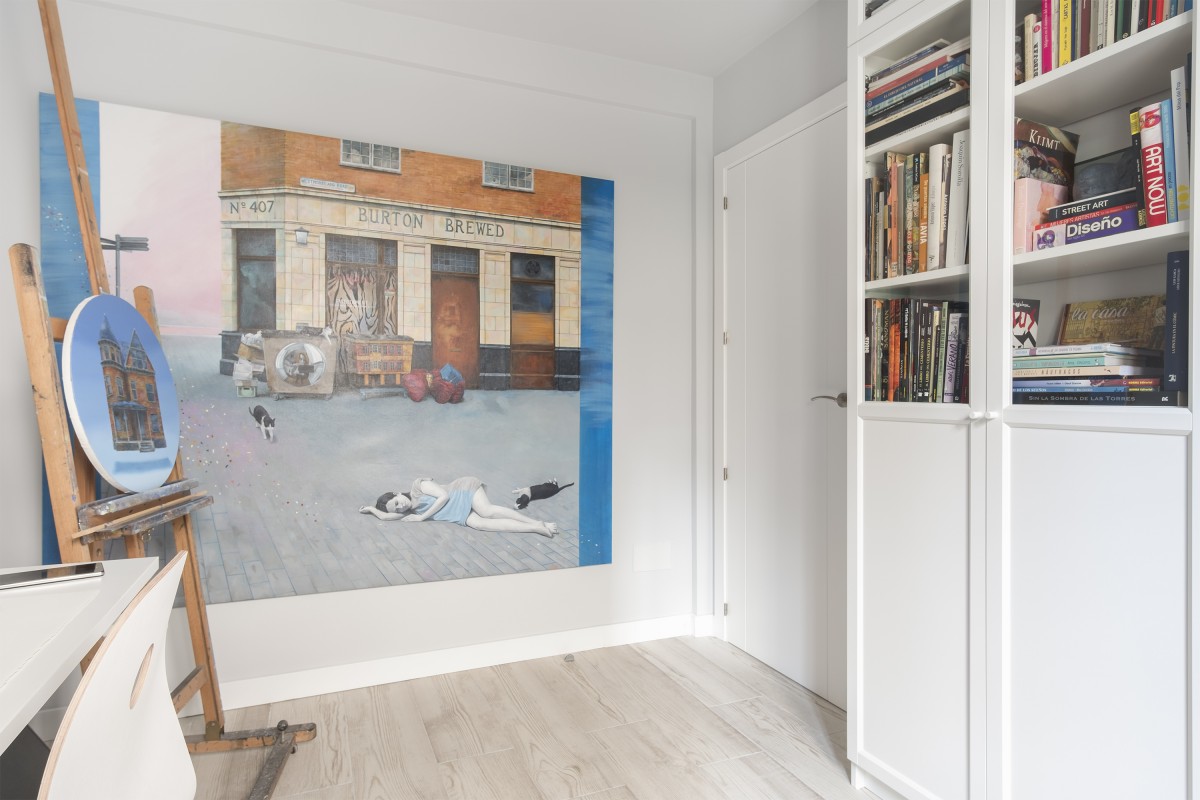 La casa como no podía ser de otro modo esta poblada (como esta simpática jirafa que decora el baño) de sus creaciones que como ella misma cuenta en su blog son realidades oníricas,imaginadas o soñadas que plasma en su obra.