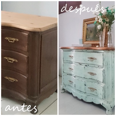 Cuanto tiempo sin pasar por el blog, Lo echo de menos pero es no me quedan horas del día para llegar a todo. Si te dijera que esta entrada la tenía medio hecha desde el 12 agosto. Bueno pero nunca es tarde si la dicha es buena jeej. Así que por fin te puedo mostrar este tutorial. Un antes y después de una cómoda antigua actualizada en verde agua.